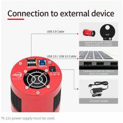 Note : toutes les caméras ZWO refroidies (version Pro), nécessitent l'emploi d'une alimentation 12V de refroidissement pour être reconnues dans le logiciel utilisé.