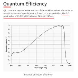 Avec un rendement quantique de 80% à une longueur d'onde de 1200 nm, cette caméra réserve des performances de très haut niveau. Son capteur est à la fois très sensible et possède un niveau de bruit thermique très faible.