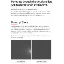 *Précisons que l'effet dit Amp Glow, peut être est facilement retiré des images lors du prétraitement, en soustrayant une carte de noirs (Darks), idéalement composée de 50 poses dans le noir, de même température et de même temps d’exposition que les images astronomiques. Pour rappel, cette caméra n'est affectée d'aucun Amp Glow.