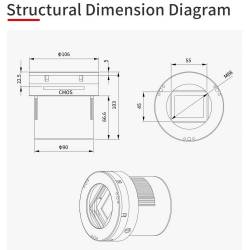La marque ZWO a eu la bonne idée de doter l'avant de cette caméra (coté capteur) d'une platine réglable à 3 vis poussantes et 3 vis bloquantes, disposées à 120°. Ce dispositif permet d'ajuster la planéité de la caméra pour que cette dernière se retrouve parfaitement alignée dans l'axe optique de votre instrument d'astronomie. Dans le cas contraire, la caméra produirait des images présentant une distorsion optique des étoiles (effet d'allongement). Cette platine réglable aura donc pour effet de restituer des étoiles ponctuelles.