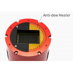 La face avant de cette caméra est dotée d'une résistance chauffante antibuée ; d'une consommation de seulement 5 Watts, ce système peut être coupé ou réactivé à volonté depuis le logiciel d'acquisition d'images de l'ASIAIR.
