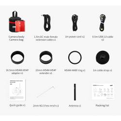 Le câble d'extension d'alimentation de 1,5 de longueur, permet de refroidir la caméra (alimentation électrique en option). 2 câbles USB 2.0 courts (50 cm) sont également fournis. Tous les accessoires fournis avec la caméra sont visibles sur la dernière photo de l'article.