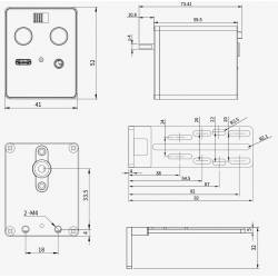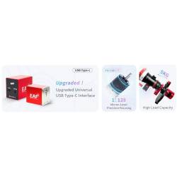 Le boîtier du EAF-PRO (41 mm x 52 mm x 73,4 mm) est doté de 2 ports de connexion : un port USB-B 2.0 de type C pour le contrôle via logiciel et l'alimentation électrique du moteur et une connexion jack femelle pour connecter une sonde de température.