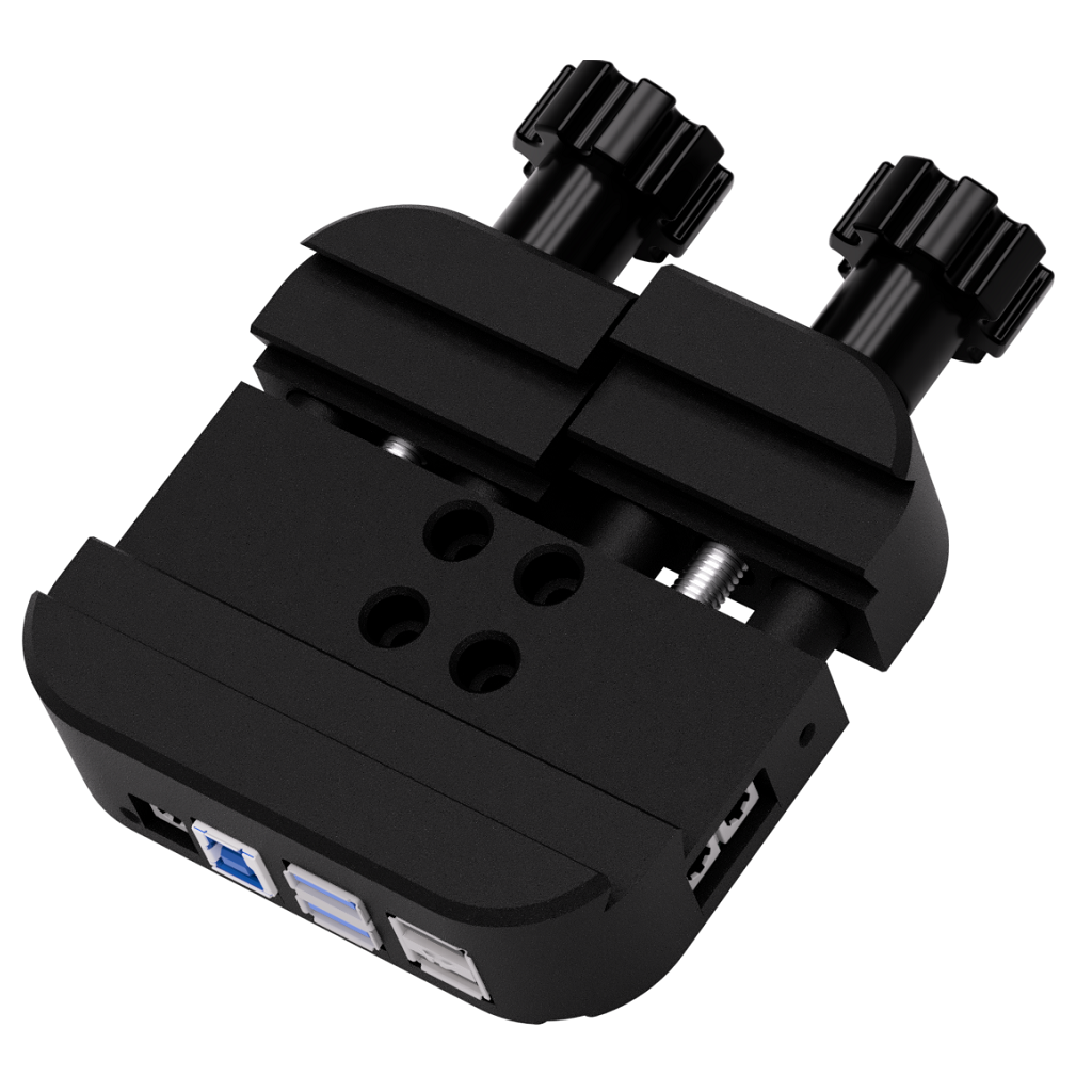 La partie électronique : intégrée à la queue d'aronde, la partie Powerbox bénéficie de fonctionnalités proches du boîtier Pocket Powerbox Advance de Pegasus Astro et permet le contrôle de votre instrumentation dédiée à l'astrophotographie.