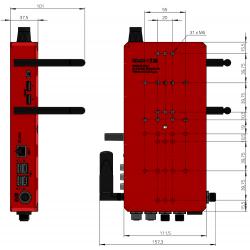 Le boîtier métallique est percé d'une multitude de trous filetés en M6 du côté instrument et M5 de l'autre côté, pour y adapter colliers et queues d'arondes du système PLUS.