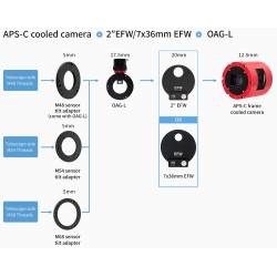 Cet OAG est conçu pour l'imagerie du ciel profond et permet de ne pas recourir à un deuxième instrument dédié au guidage, qui pourrait engendrer des flexions mécaniques et surcharger votre monture.