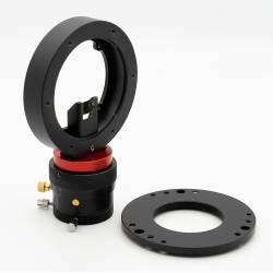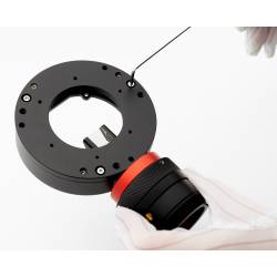 Le prisme servant à prélever la lumière, est relativement large (12 mm x 12 mm), ce qui donne plus de chances de pouvoir "attraper" une étoile guide. Le diviseur optique est livré avec un assortiment de bagues adaptatrices pour fixer votre imageur et votre caméra de guidage dans l'axe optique de votre instrument :