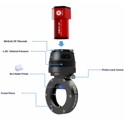 Diviseur optique guideur hors axe Player One version Max, avec filetage en M48 mm, M54 et M42. Prisme 8 x 14 mm. Permet de guider un instrument, directement au foyer, sans ajout d'instrument guide en parallèle. Compatible avec les caméras Player One modèles POSEIDON, ARTEMIS, ZEUS et toute autre caméra compatible.