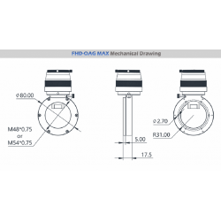• Bague frontale côté tube optique, filetée en M54 femelle (M54 mm x 0,75 mm)