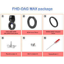 Le diviseur optique Hors Axe Player One version MAX (OAG → Off-Axis Guider) avec filetages M48, M42 et M54, est doté d'un petit prisme qui prélève une partie de la lumière au niveau du plan focal de votre instrument, de manière à viser une étoile guide sans empiéter sur le champ de votre imageur (Caméra CMOS / CCD ou Appareil Photo Numérique - APN). Il est compatible avec les caméras Player One modèles POSEIDON, ARTEMIS, ZEUS ou toute autre caméra compatible, et les accessoires Player One pour filtres comme les roues à filtres Phoenix 7x36mm / 5x2" / 7x2" et le porte-filtre version MAX.