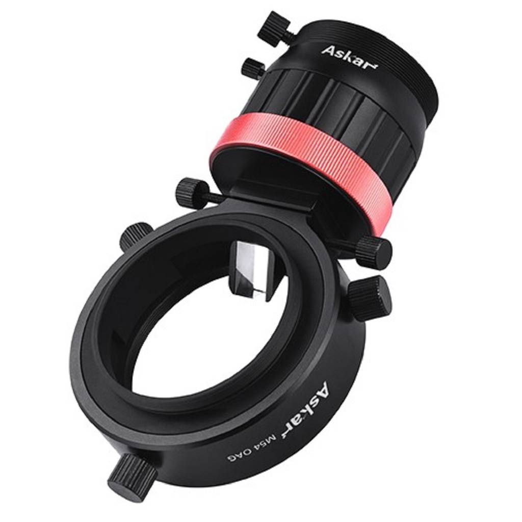 Le diviseur optique Hors Axe Askar avec filetage M54 (OAG → Off-Axis Guider) est doté d'un petit prisme qui prélève une partie de la lumière au niveau du plan focal de votre instrument, de manière à viser une étoile guide sans empiéter sur le champ de votre imageur (Caméra CCD/CMOS ou Appareil Photo Numérique - APN). Il est compatible avec la majorité des caméras, roues à filtres, correcteurs de champ, réducteurs de focales et adaptateurs filetés.
