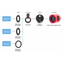 Sa minceur (20 mm d'épaisseur), permet d'éviter tout vignettage sur les télescopes ouverts à F/D=5 ou plus. La distance entre le filtre et le capteur de la caméra ZWO ASI-1600 (par exemple) est de seulement 10 mm.