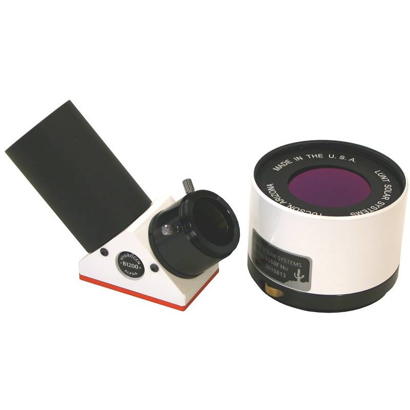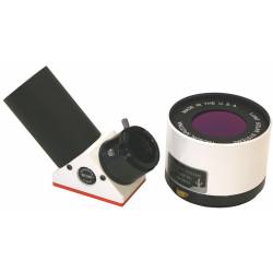 Le système comprend le filtre bloquant BF1200, conçu pour les télescopes à distance focale pouvant atteindre jusqu'à 1080 mm. Des filtres bloquant plus grands sont disponibles en option pour des distances focales plus importantes. Le filtre bloquant est intégré dans un renvoi coudé à 90° pour porte-oculaires 2’’. Ce renvoi coudé est équipé d’un adaptateur pour les oculaires 1,25’’ et d’un connecteur T2 pour caméra.