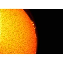 Le système de filtre solaire à étalon H-alpha LS50FHa possède une ouverture libre (pas d’obstruction centrale) de 50 mm et peut être utilisé sur n’importe quelle lunette astronomique et sur la plupart des télescopes. Avec une largeur de bande passante d’environ 0,75 angström, le système LS50FHa est capable d’offrir un bon contraste lors de l’observation de la surface du Soleil, mais aussi des protubérances sur le bord.
