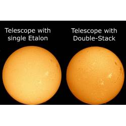 Ce filtre solaire étalon Double Stack est compatible avec tous les systèmes de filtres LS60FHa et les télescopes LS60THa de Lunt Solar Systems. En ajoutant ce système de filtre étalon Double Stack disponible en option, la largeur de bande passante peut être réduite jusqu'à environ <0,55 angström (selon le télescope utilisé). Il permet d’augmenter considérablement le contraste sur la surface du soleil pour vous permettre de visualiser davantage de détails.
