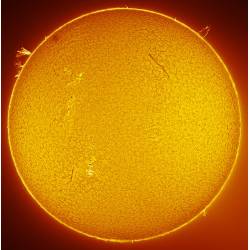Le système de filtre solaire à étalon H-alpha LS60FHa possède une ouverture libre (pas d’obstruction centrale) de 60 mm et peut être utilisé sur n’importe quelle lunette astronomique et sur la plupart des télescopes. Avec une largeur de bande passante d’environ 0,75 angström, le système LS60FHa est capable d’offrir un bon contraste lors de l’observation de la surface du soleil, mais aussi des protubérances sur le bord.