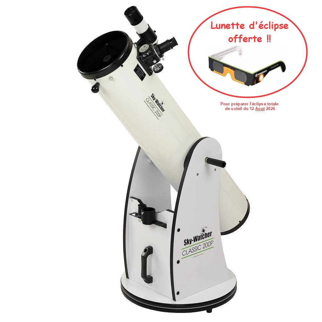 Télescope Dobson 200/1200 avec le livre Guide de l'astronome débutant, une Carte du ciel et deux paires de lunette spéciale éclipse pour préparer l'éclipse de soleil du 12 aout 2026