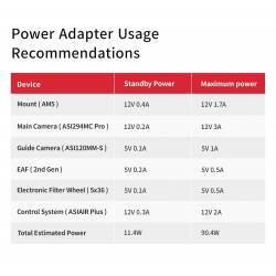 Cette alimentation 12V de marque ZWO est spécifiquement conçue pour délivrer un courant régulier de 12V et s'utilise sans aucun problème sous les conditions parfois difficiles, rencontrées en milieu extérieur par des températures de -10°C.