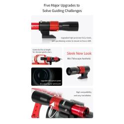 Utilisé avec des logiciels de type PHD2 Guiding ou GuideMaster, cet instrument compact vous permet de réaliser un autoguidage de qualité, même pour des instruments imageurs dotés d'une focale petite à moyenne (750 mm, voire 1000 mm). En effet, ces logiciels permettent d'autoguider à la précision du 1/10ème de pixel. Pour peu que votre caméra de guidage soit équipée de petits pixels, cela équivaut à disposer d'une lunette guide de plus grande focale.