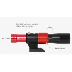 Malgré le diamètre modeste de sa lentille (30 mm), cette mini lunette guide permet de capter à chaque fois plusieurs étoiles guides sur votre capteur de caméra de guidage. Sa petite focale de 150 mm donne un grand champ de vision, typiquement de 1,5° x 1° si elle est utilisée avec une caméra ZWO 120MM, ce qui donne toutes les chances d'attraper des étoiles guides.
