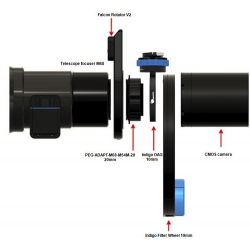 L'INDIGO OAG prend en charge le modèle de trou traversant de 62 mm pour une connexion directe avec les dernières caméras CMOS et roues à filtres.