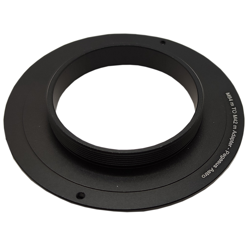 L'adaptateur M54 Pegasus Astro vers M42 mâle, permet d'associer un accessoire doté d'un filetage femelle M54 (54 mm x 0,75 mm) à un accessoire doté d'un filetage femelle M42 mm x 0,75 mm (T-2).