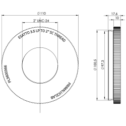 Bague d'adaptation Prima Luce Lab, permet de connecter le focuseur ESATTO 3.5" sur un télescope de type Schmidt-Cassegrain (SC) avec filetage de 2" de diamètre à l'arrière, côté plan focal.