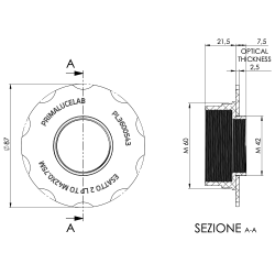 Cette bague d'adaptation Prima Luce Lab, se connecte au focuseur ESATTO 2" LP par un filetage en M60 mm. En sortie, le filetage est du T2 (M42 mm x 0,75 mm) pour y adapter une caméra CMOS ou CCD par exemple.