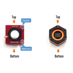 Ce tilter Player One pour l'imagerie solaire est doté d'une interface au filetage standard M42 x 0,75 mm sur chaque face. Il vient se visser sur votre caméra, et permet d'ajuster précisément la planéité entre le plan focal du capteur imageur de la caméra et l'axe optique de l'instrument solaire. Voir les compatibilités en fin de description.