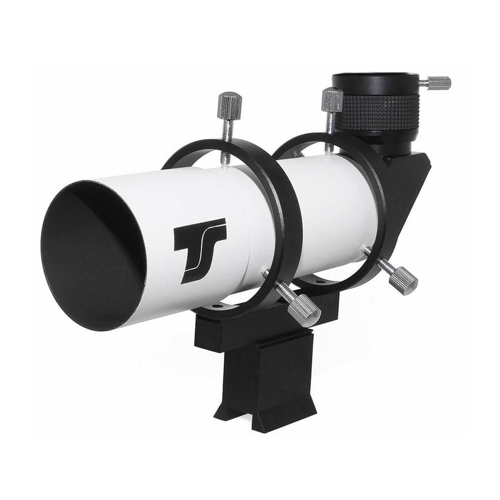 Chercheur TS Optics éclairable 9 x 50 (diamètre 50 mm, grossissement 9x) - Renvoi-coudé à 90°, chercheur à image redressée. Possibilité d'illuminer le réticule de l'oculaire. Ce chercheur peut également servir d'instrument guide pour l'astrophotographie.