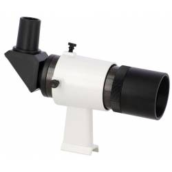 Chercheur 9 x 50 (grossissement 9 fois, diamètre 50 mm), équipé d'un renvoi coudé à 90° et d'un oculaire réticulé.
