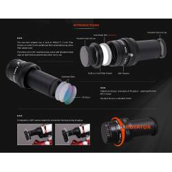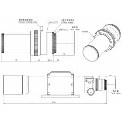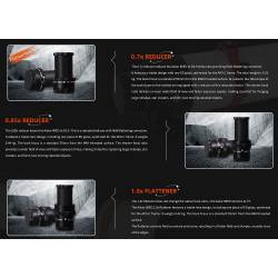 Le correcteur / aplanisseur de champ est composé de 3 éléments optiques, dont l'un est en verre ED (Extra Low Dispersion), qui diffuse très peu la lumière et atténue les aberrations chromatiques.