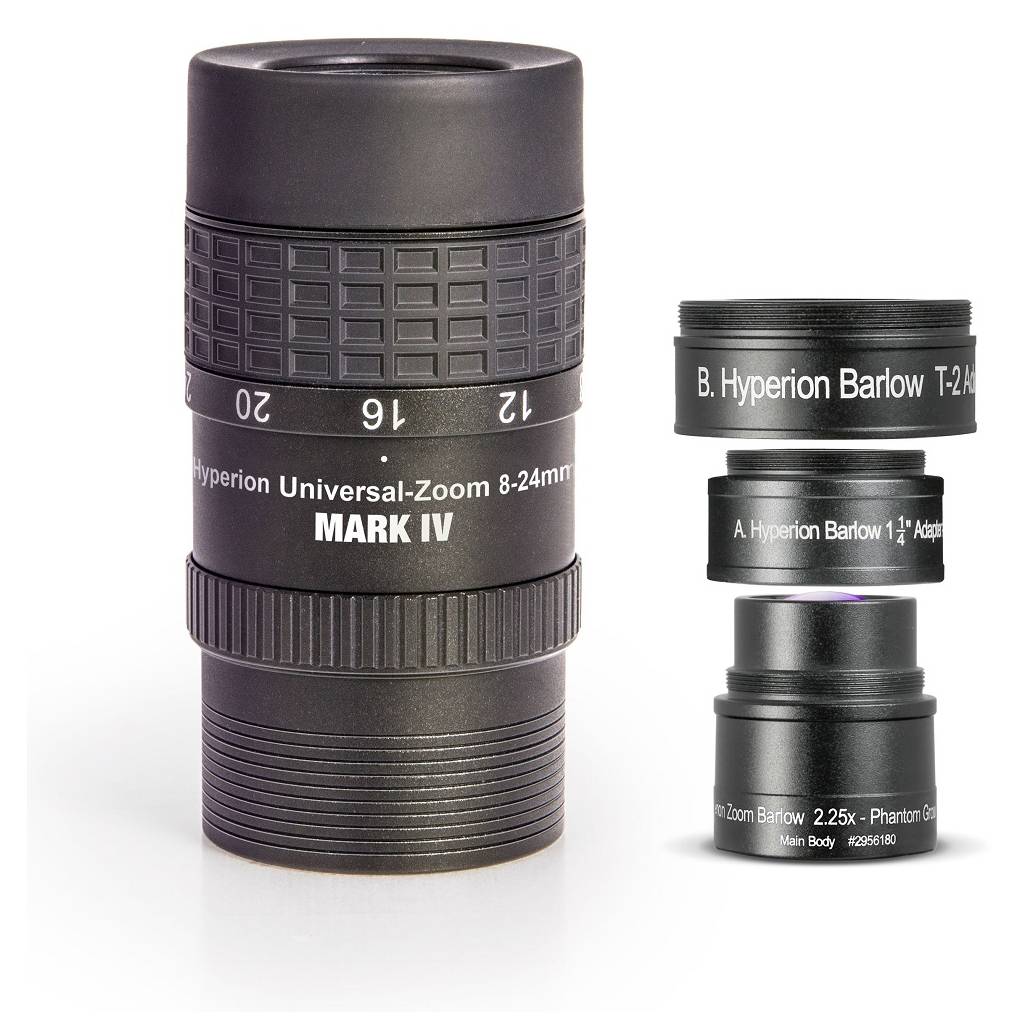 Ensemble Baader comprenant un Oculaire Zoom 8-24 mm Mark IV et une lentille de Barlow Hyperion 2,25x.