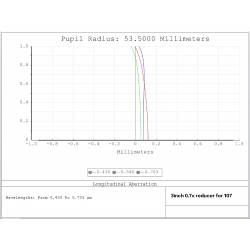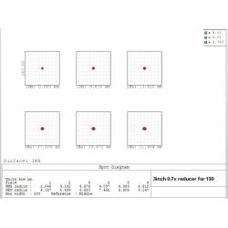 Le réducteur joue également un rôle de correcteur de champ, pour éviter que les étoiles en bord de champ ne ressemblent plus à des hirondelles qu'à des points bien définis. Doté de 3 éléments optiques, dont l'un en verre ED (Extra low Dispersion), ce réducteur / correcteur vous permettra d'obtenir des étoiles ponctuelles jusque sur les bords du champ.