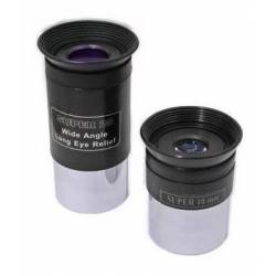 Le télescope est livré avec 2 oculaires au coulant 31,75 mm : un oculaire Super de 25 mm de focale, pour les observations grand champ à faible grossissement (60x), et un oculaire Super de 10 mm pour les observations planétaires à plus fort grossissement (150x). Il conviendra, pour l'observation planétaire précise, de l'équiper d'une lentille de Barlow de qualité pour doubler chaque grossissement, ou bien d'équiper votre télescope d'oculaires à plus courte focale, vendus séparément (voir l'onglet "Accessoires").