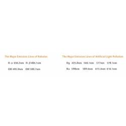 La combinaison de la bande passante étroite du filtre (7 nm) et de sa transmission supérieure à 90%, procurera à vos images un contraste étonnant, faisant ressortir les détails des nébuleuses, tout en gardant un fond de ciel très sombre.