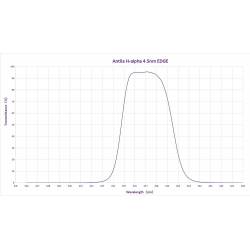 La spécification de blocage hors bande est de OD5 (0,001 %), ce qui garantit un excellent rapport signal/bruit et une fréquence de coupure efficace afin de minimiser les interférences d'autres longueurs d'onde. Les filtres astrophotographiques 4,5 nm EDGE, à coupure nette améliorée, sont conçus pour minimiser les halos autour des étoiles brillantes.