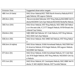 La combinaison d'une transmission de lumière élevée (>95%) et de la suppression de la lumière du sodium permet aux observateurs de percevoir des détails structurels fins dans les nébuleuses planétaires, les nébuleuses en émission, même sous une pollution lumineuse modérée.