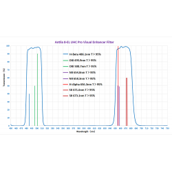 Le filtre UHC Antlia 8-EL (8 Emission Lines - soit 8 bandes passantes d'émission de lumière) ne laisse passer que les lumières intéressantes émises par bon nombre de nébuleuses, tout en bloquant la lumière du sodium émise par les lumières parasites de l'éclairage public.