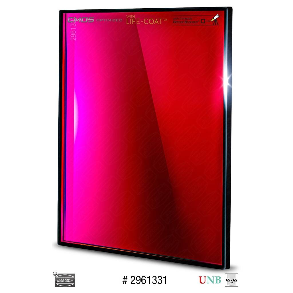 Filtre Baader H-Alpha 3.5 nm UNB (Ultra Narrow Band) nouvelle génération, optimisé pour les capteurs de type CMOS. Section carrée 65 x 65 mm. Filtre non monté. Recommandé pour les instruments ouverts entre f/10 et f/3,5. Bande centrale de transmission 656,3 nm.