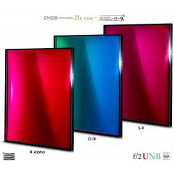 Filtres UNB (Ultra Narrow Band) SII - H-Alpha - OIII (SHO) 3,5 / 4 nm nouvelle génération, pour les télescopes très ouverts (entre f/1,8 et f/3,4). Filtres à faces parallèles polies avec front d'ondes plan et optimisés pour les capteurs de type CMOS.