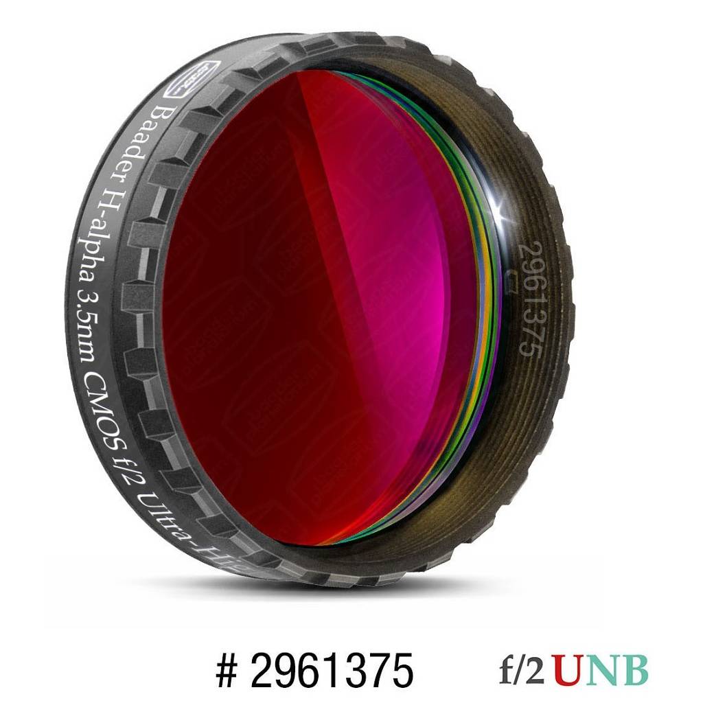 Filtre Baader H-Alpha 3.5 nm UNB (Ultra Narrow Band) nouvelle génération, hautes rapidité pour les télescopes très ouverts (entre f/1,8 et f/3,4). Filtre optimisé pour les capteurs de type CMOS. Diamètre 31,75 mm. Bande centrale de transmission 656,3 nm.