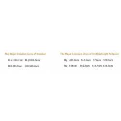 Sa transmission de lumière est de 80%, centrée sur la raie H-alpha à 656 nm.