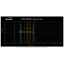 Filtre photographique Optolong L-eXtreme anti pollution lumineuse, 2 en 1 : ce filtre sélectif (bande passante de 7 nm), laisse passer la lumière H-Alpha et OIII des nébuleuses de la voie lactée ou d'autres galaxies. Sa bande passante plus sélective que son homologue le filtre L-eNhance, le rend adapté aux télescopes et objectifs photos ouverts avec un rapport focale / diamètre (F/D) court, de l'ordre de F/2 à F/3.3.