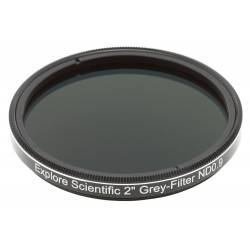Filtre gris de densité neutre Explore Scientific ND 0.9, diamètre 50,8 mm, transmission 13%. Utilisation en visuel pour les planètes et la Lune.