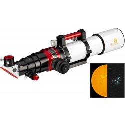 Lunette polyvalente de conception modulaire, destinée à la fois pour l'observation du Soleil dans la longueur d'onde H-alpha, ainsi que pour les observations du ciel nocturne. Attention, le kit de conversion vers l'observation nocturne (voir l'onglet "Accessoires") n'est pas inclus.