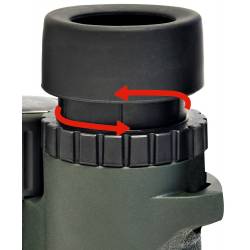 Les oeilletons rotatifs pivotants et réglables permettent d’ajuster facilement la distance interoculaire, pour une observation avec ou sans lunettes de vue ; la correction dioptrique est de série.
