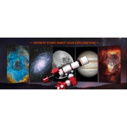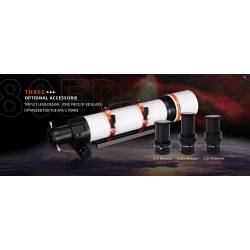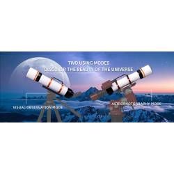 En astrophotographie, cette lunette vous donnera des images de qualité. Pour bénéficier d'une qualité optimale, il convient de l'équiper d'un correcteur de champ vendu séparément (voir l'onglet "Accessoires"). La lunette est donc adaptée pour l'imagerie de grandes nébuleuses, de champs de galaxies, d'amas ouverts et de grandes comètes... Munie d'une lentille de Barlow, elle permet d’accéder à l'imagerie planétaire.