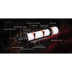 Une poignée permet de transporter la lunette très facilement et peut recevoir, par exemple, une petite lunette guide équipée d'une caméra de guidage ou un chercheur.