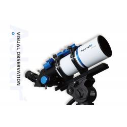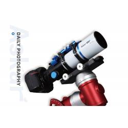 Un support de fixation en queue d'aronde de type Vixen (largeur 43 mm / longueur 230 mm) équipe la lunette pour pouvoir la fixer solidement sur votre monture équatoriale, par exemple de type monture Sky-Watcher EQ5 voire HEQ5, ou bien les montures ZWO AM3N ou AM5N.